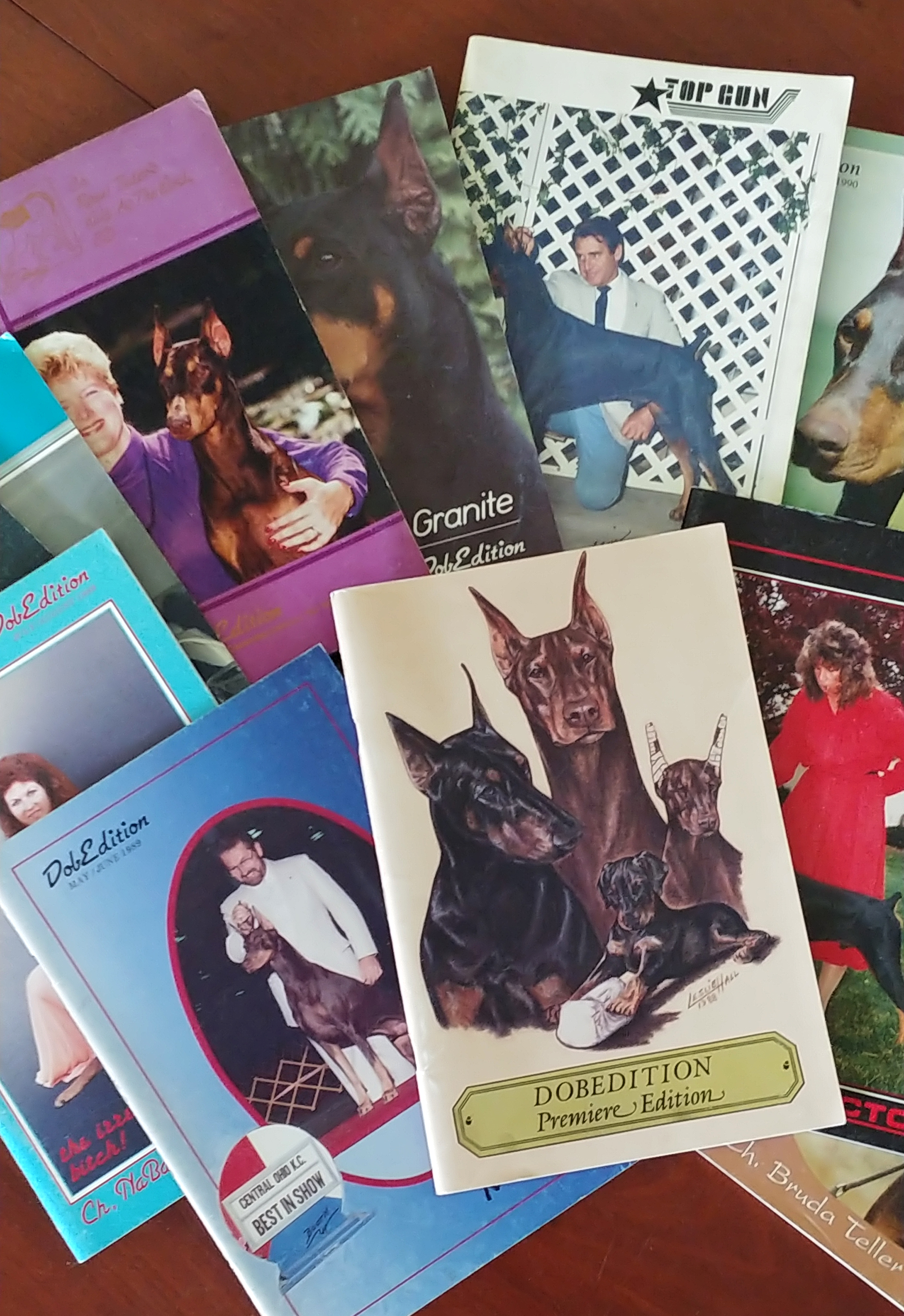 The original DobEdition was a 6" x 9" bi-monthly magazine published in print from January 1989 through September 1990. It ceased due to a new partnership debaucle. The first issue of DobEdition was the winner of Best Special Publication by the Dog Writers Association of America. I've also worked for the Doberman Digest (and their many other magazines Doll-McGinnis published at the time), and The Doberman Network on the creative side: Helping establish its “look,” designing the DN logo and still designing some editorial content.